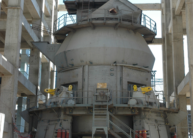 電動機通過減速機帶動磨盤轉動,物料經喂料器從進料口落在磨盤中央,同時熱風從進風口進入磨內。隨著磨盤轉動,物料在離心力作用下,向磨盤邊緣移動,經過磨盤上環形槽時受到磨輥碾壓而粉碎,粉碎后物料在磨盤邊緣被風環高速氣流帶起,大顆粒直接落到磨盤上重新粉磨,氣流中物料經過上部選粉機時,在旋轉轉子作用下,粗粉從錐斗落到磨盤重新粉磨,合格細粉隨氣流一起出磨,通過收塵裝置收集,即為產品,含有水分物料在與熱氣流接觸過程中被烘干,通過調節熱風溫度,能滿足不同濕度物料要求。通過調整選粉機,可達到不同產品所需粗細度。