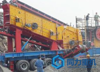 4、移動破碎站篩下皮帶機、振動篩、破碎機一體化的車載安裝。